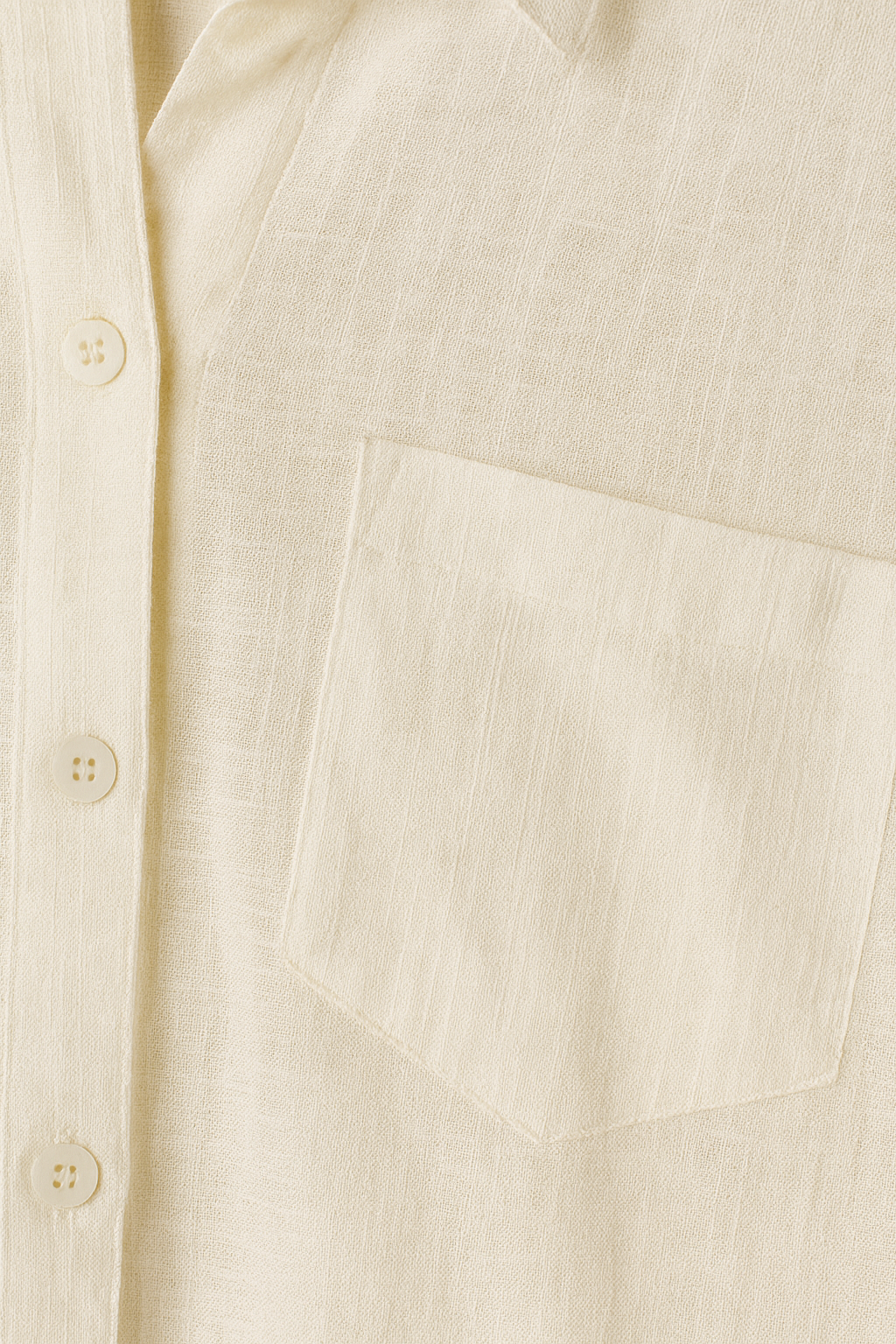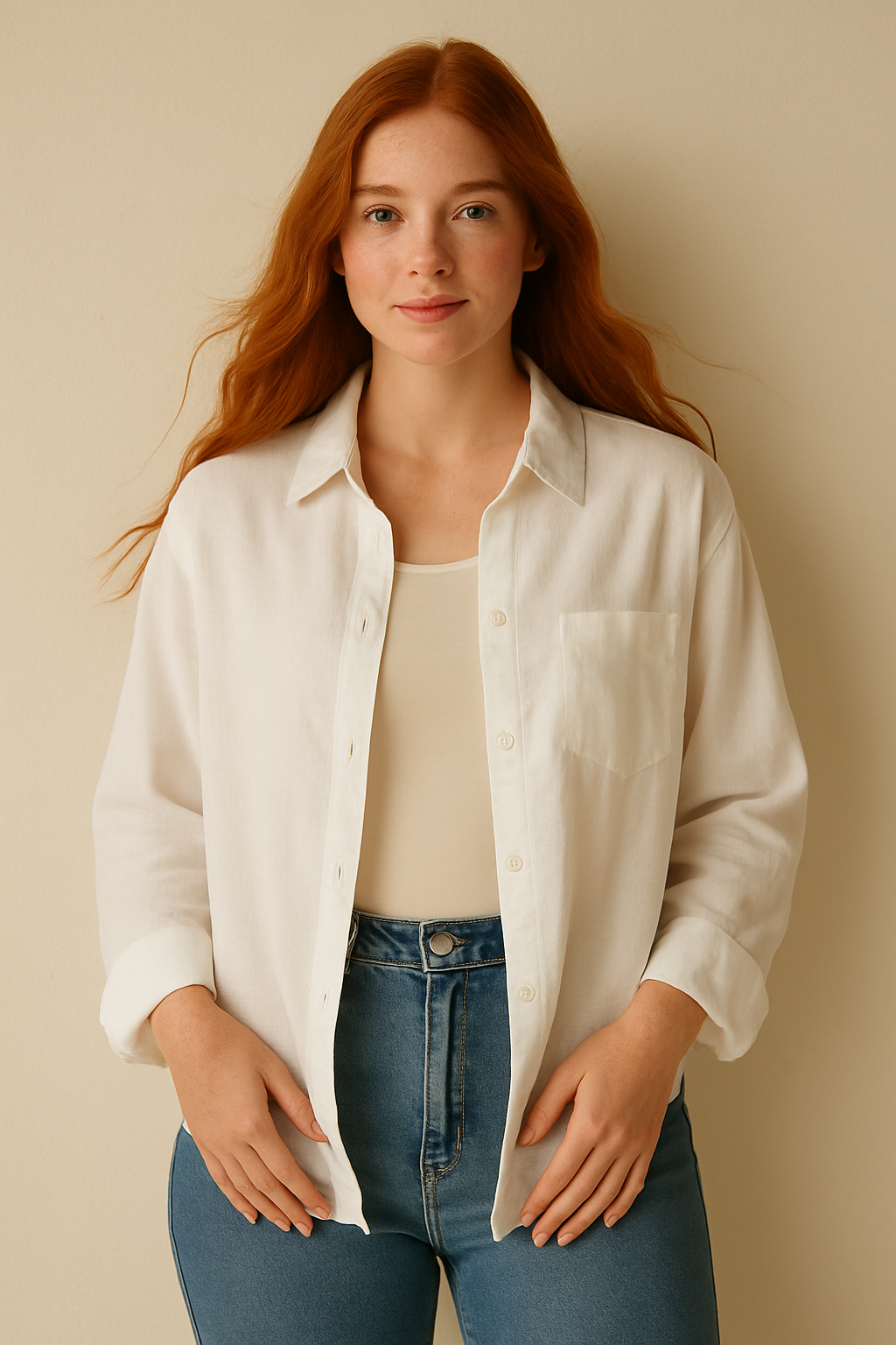 Blusa fresca y elegante confeccionada en tela tipo lino, ideal para climas cálidos. Presenta cuello camisero clásico, botones frontales y un bolsillo práctico en el pecho que aporta un detalle funcional y moderno. Su diseño versátil combina comodidad y estilo para cualquier ocasión.