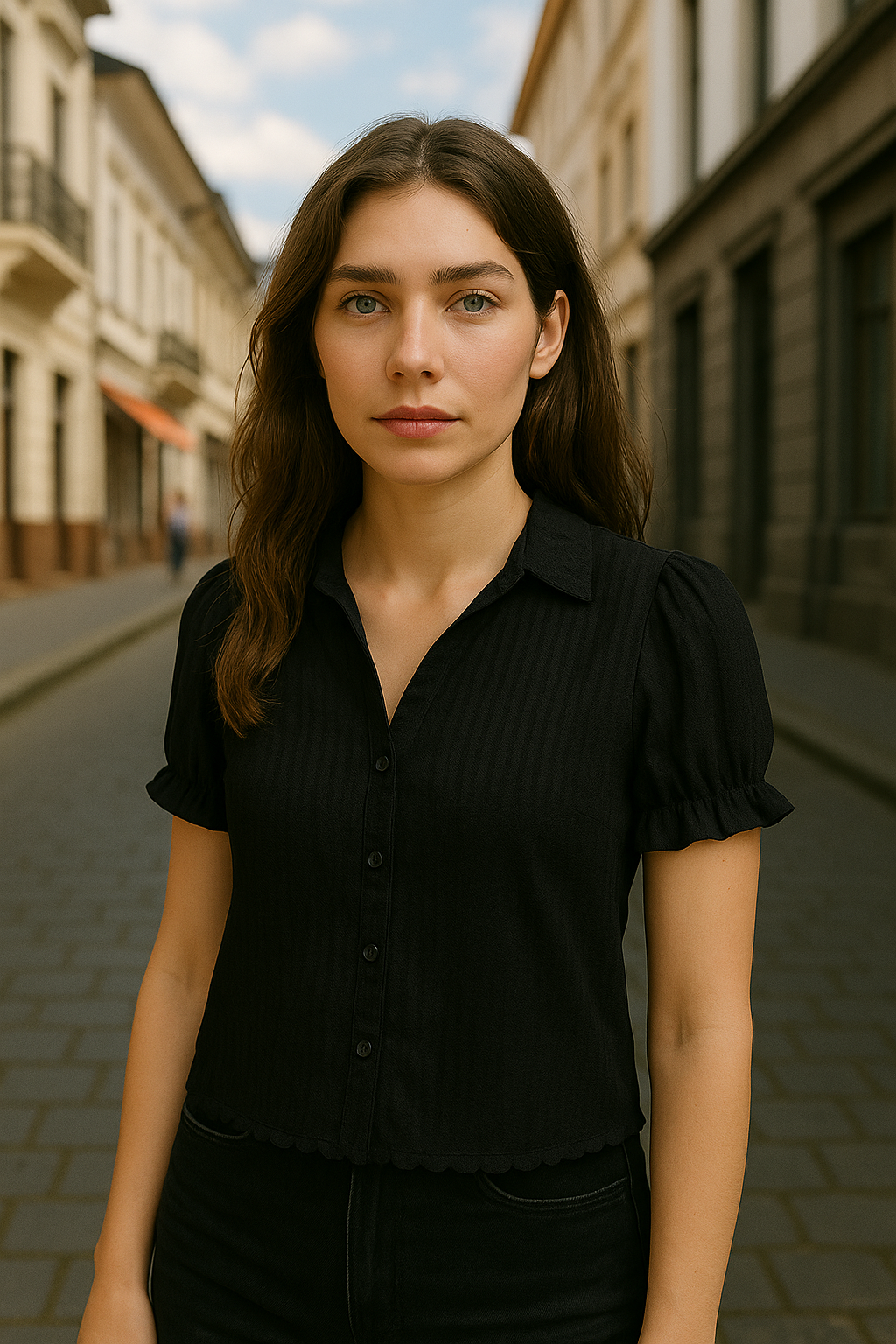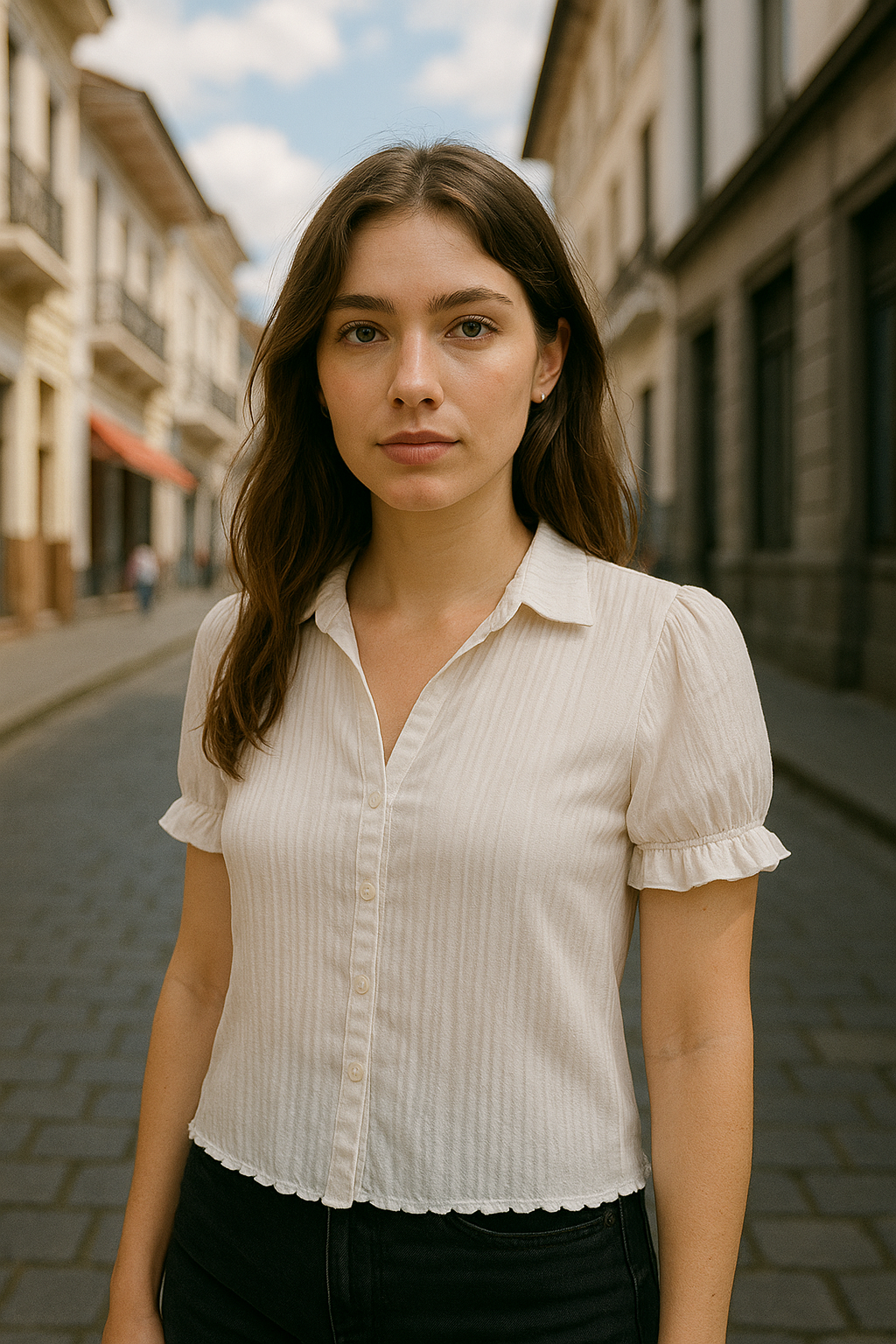 Una prenda versátil y delicada, perfecta para combinar con jeans, faldas o pantalones de vestir.