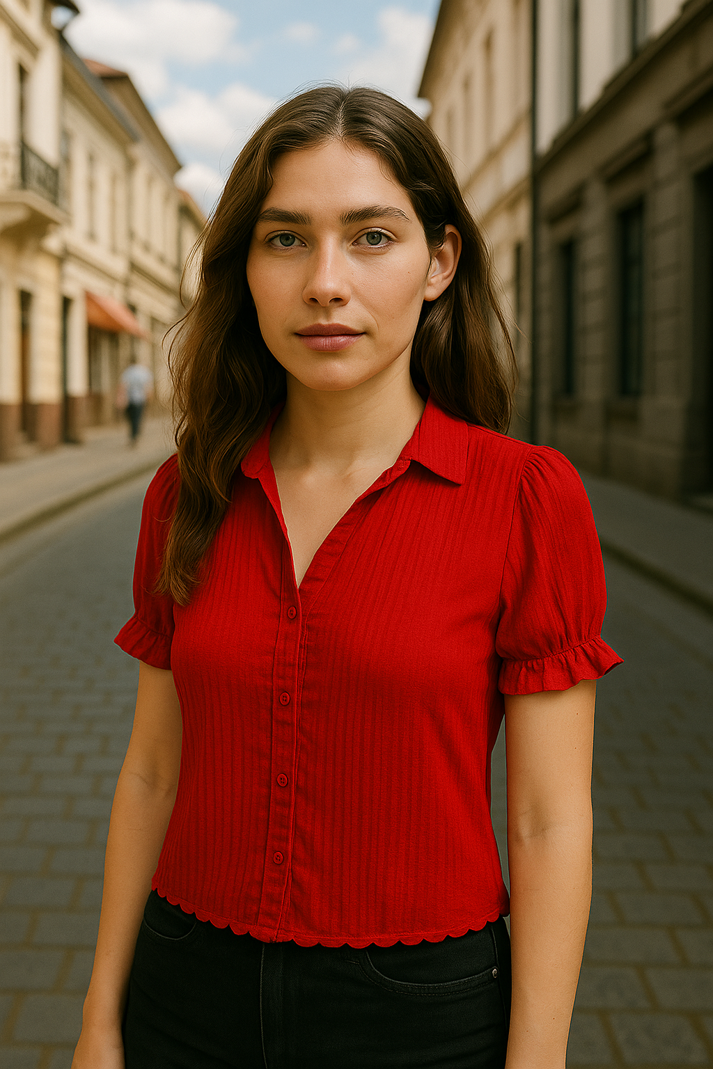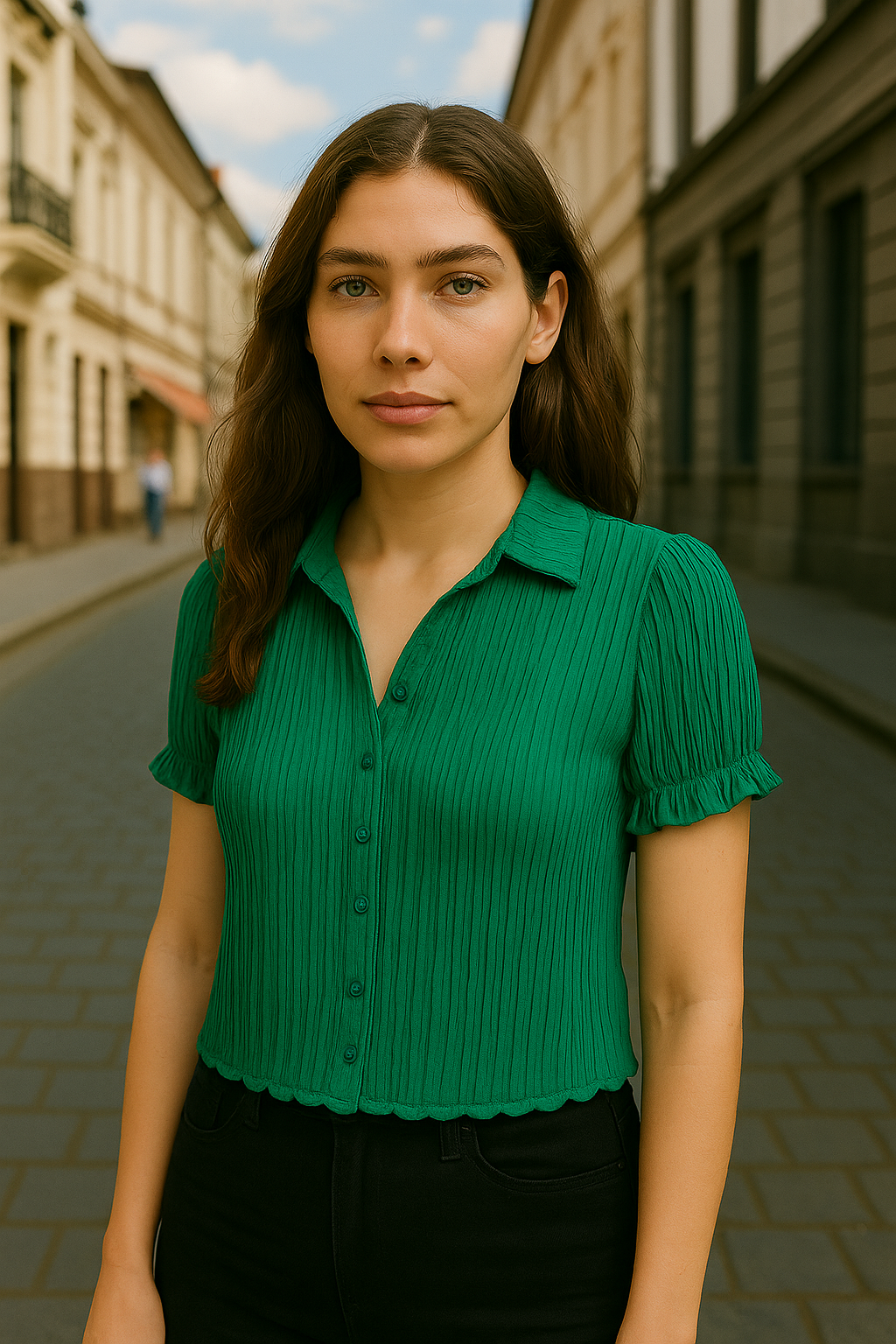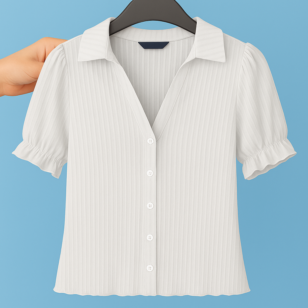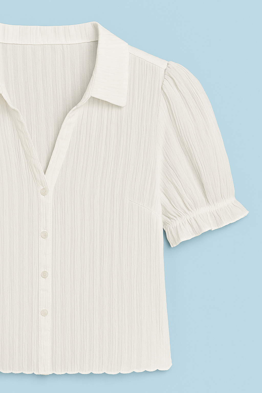 Blusa fresca y femenina confeccionada en tela liviana con textura acanalada. Su diseño ajustado realza la figura y sus detalles sutiles la hacen ideal para looks casuales o semi formales.