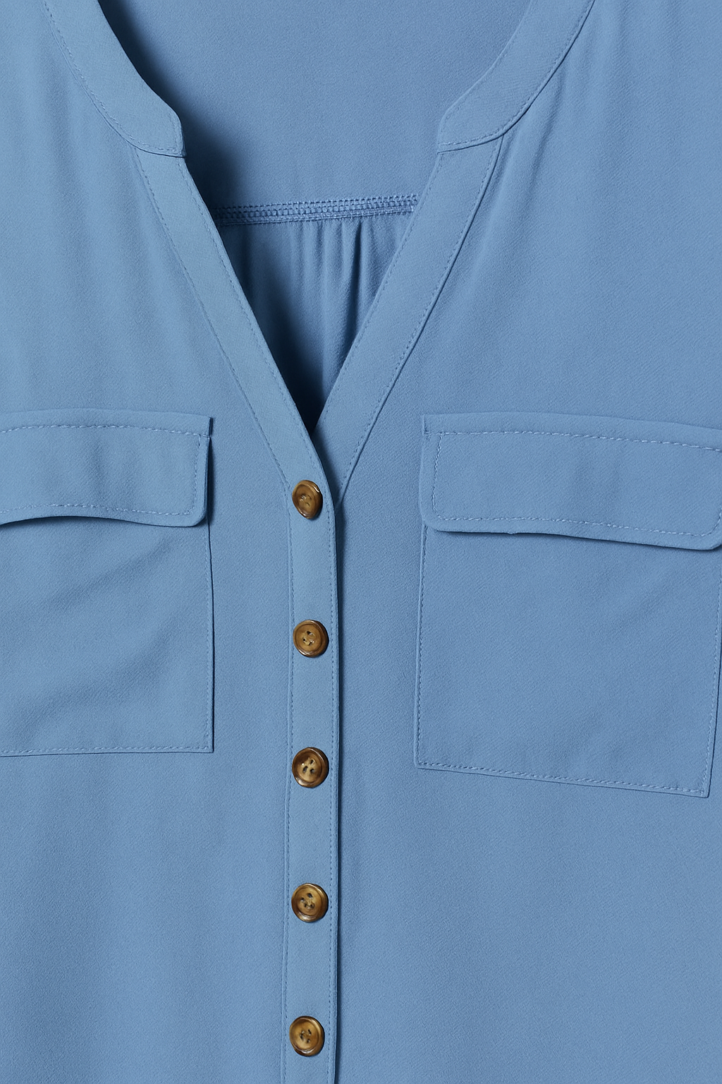 BLUSA PLUS CUELLO EN V ABOTONADA CON DOS BOLSILLOS EN EL PECHO