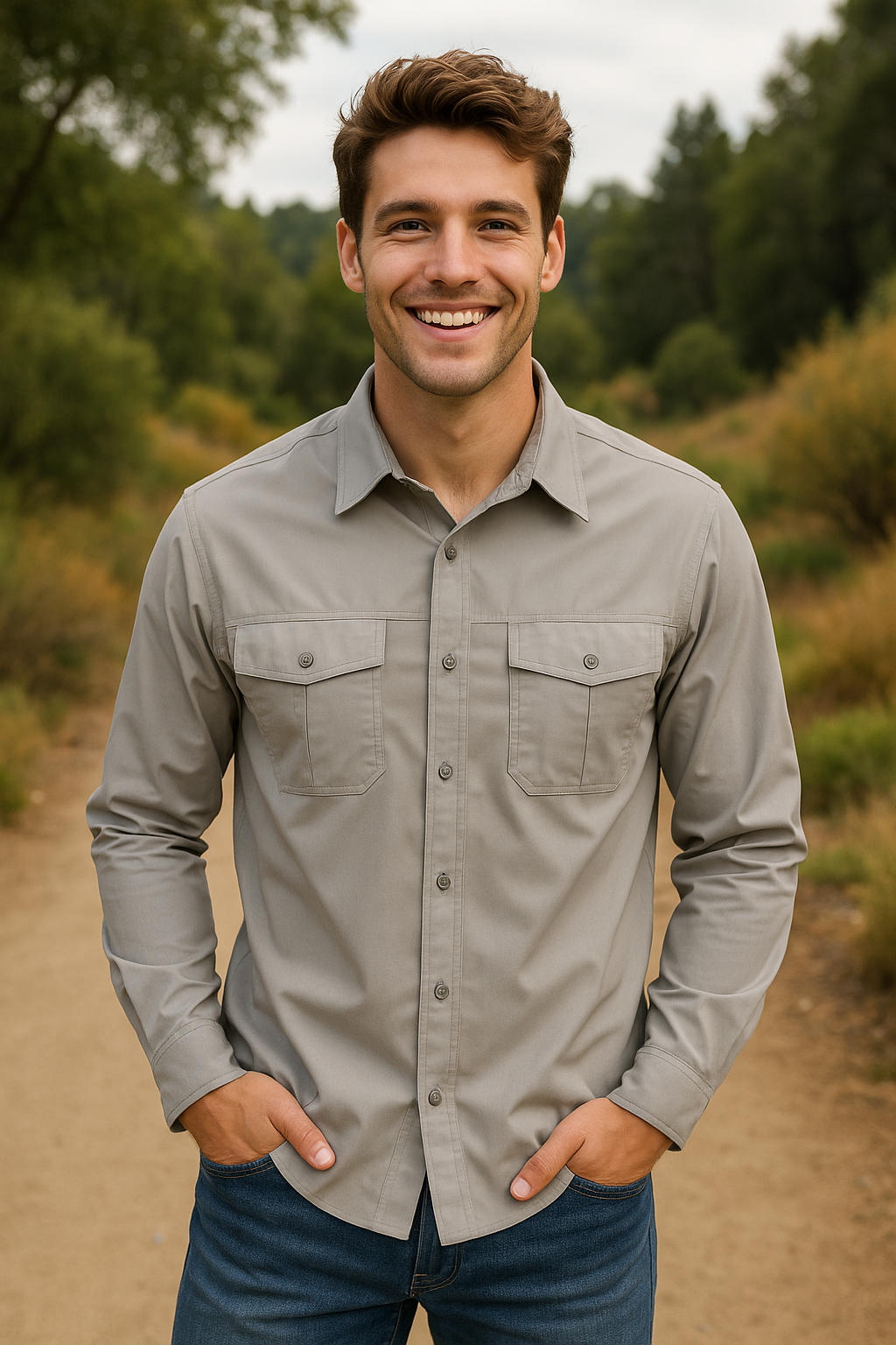 Versátil, resistente y con un estilo atemporal. Esta camisa safari de manga larga está diseñada para quienes buscan comodidad y practicidad sin perder elegancia. Su confección en tela ligera y fresca garantiza libertad de movimiento y durabilidad, ideal tanto para actividades al aire libre como para un look casual moderno.