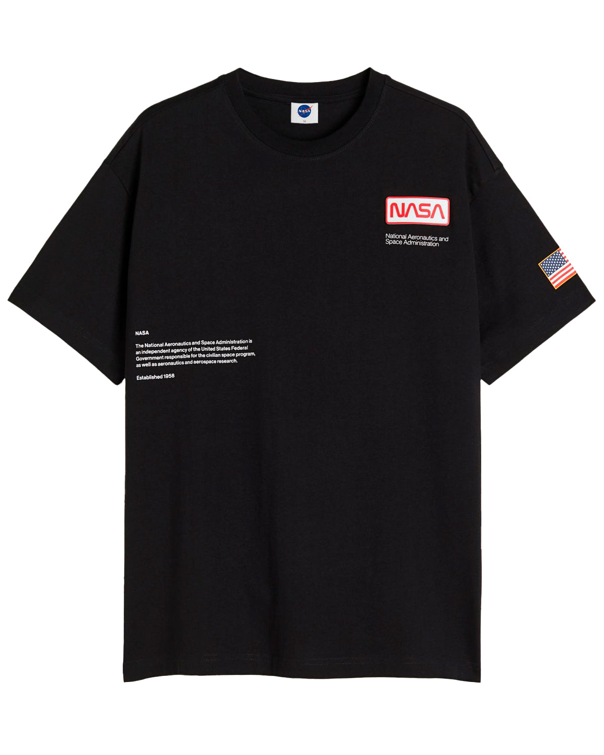 CAMISETA NASA NEGRA OVERSIZE 4 LOGOS