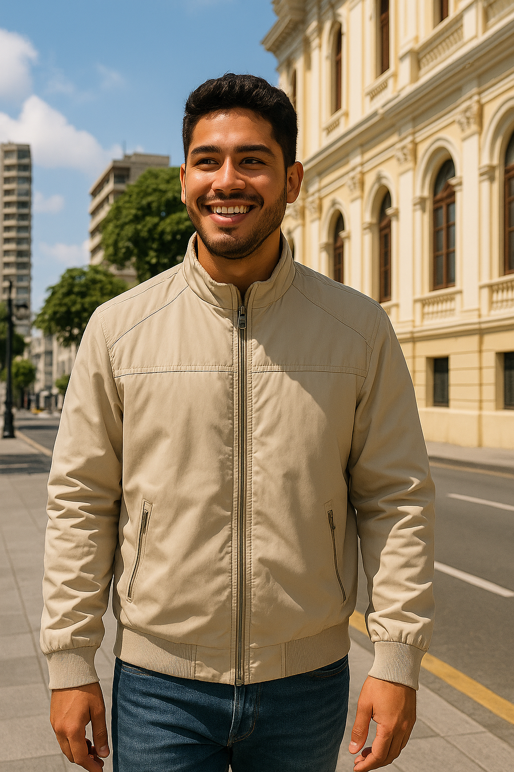 Sutil, funcional y con carácter: esta chaqueta casual en tono habano es una prenda clave para climas fríos y estilos urbanos. Su diseño sobrio se realza con el doble cuello alto, que aporta tanto protección como un detalle moderno.