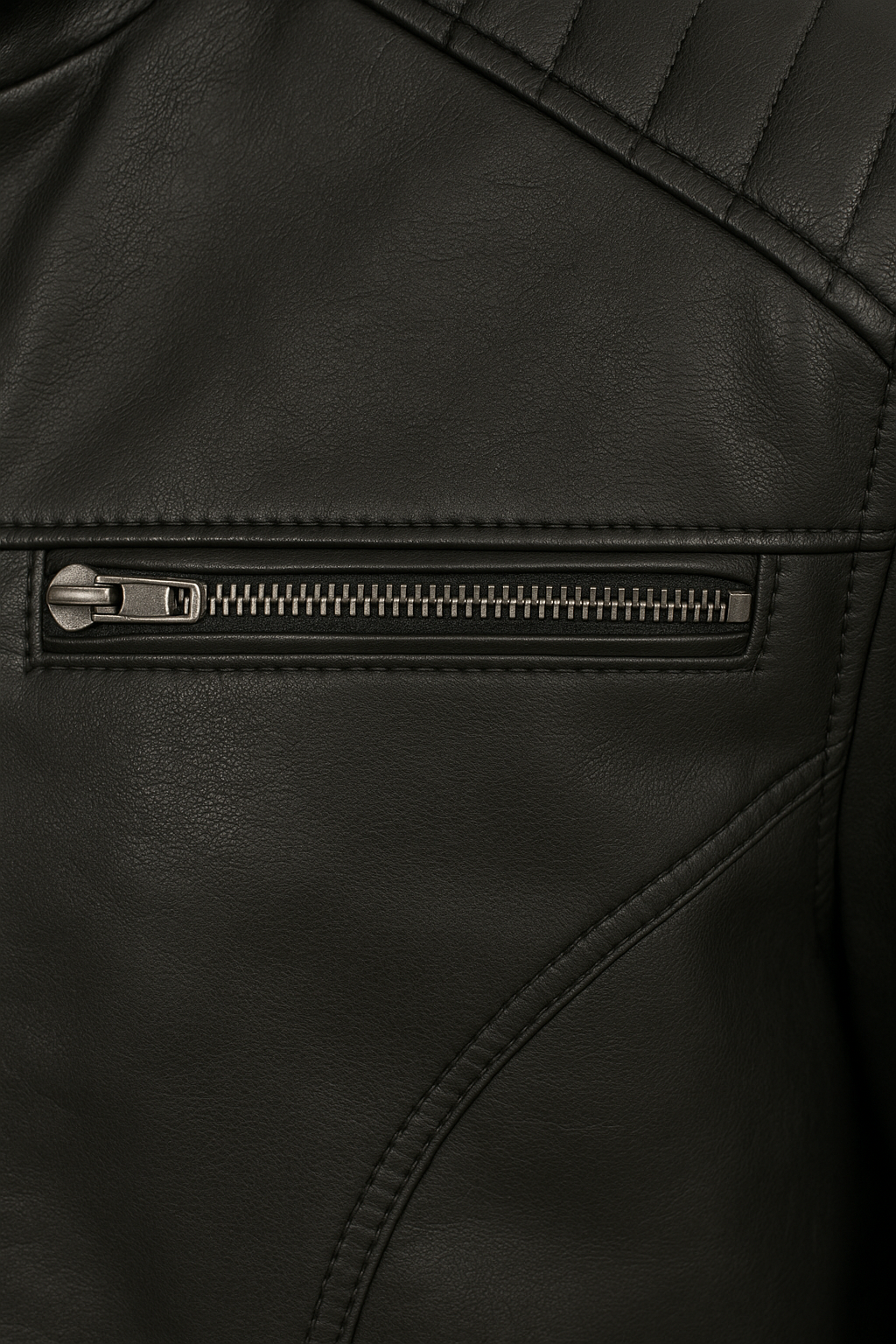 La abertura con cierre en el pecho no solo es funcional, sino que añade un detalle único al diseño, haciéndola ideal tanto para el día como para la noche. Esta chaqueta es el complemento perfecto para un outfit urbano y audaz.