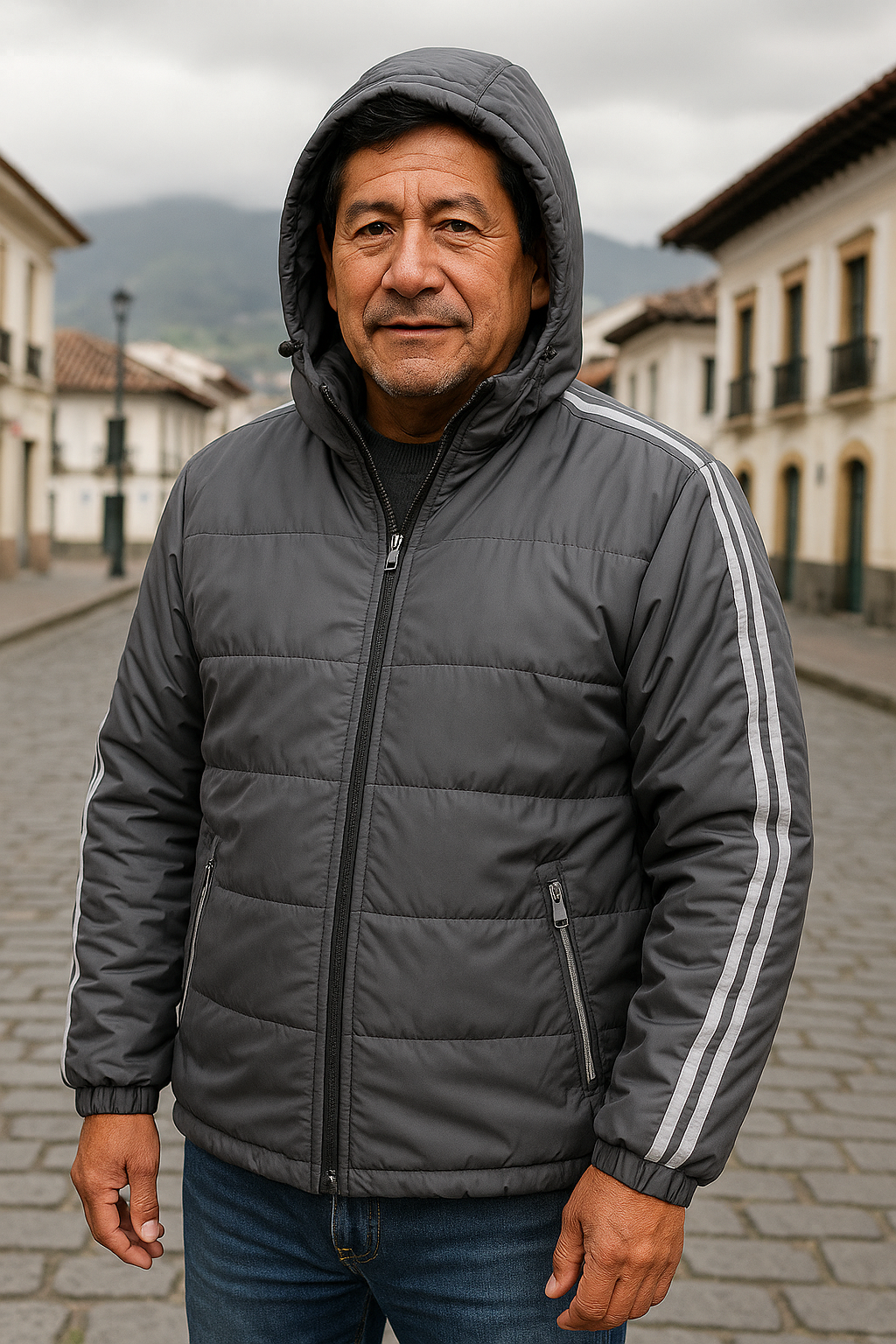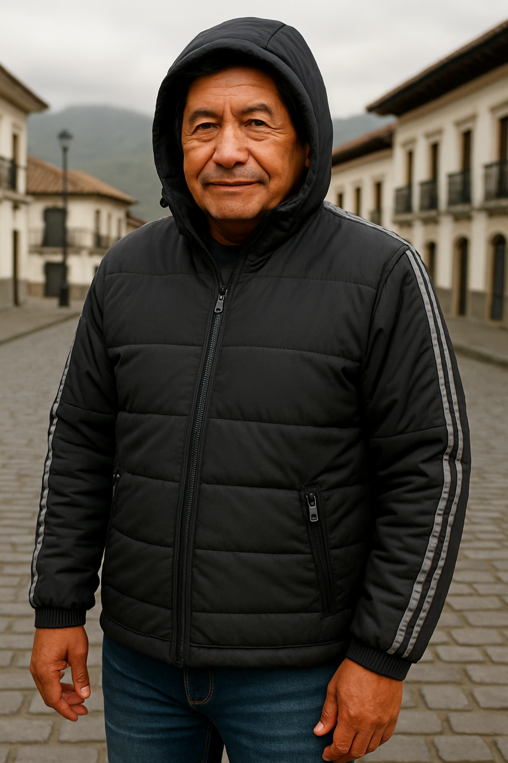 Diseñada para ofrecer estilo y comodidad, esta chompa rompevientos es perfecta para los días fríos. Cuenta con una capucha integrada que brinda protección extra contra el viento y la lluvia, además de un práctico sistema de cierre y botones para un ajuste seguro y versátil.