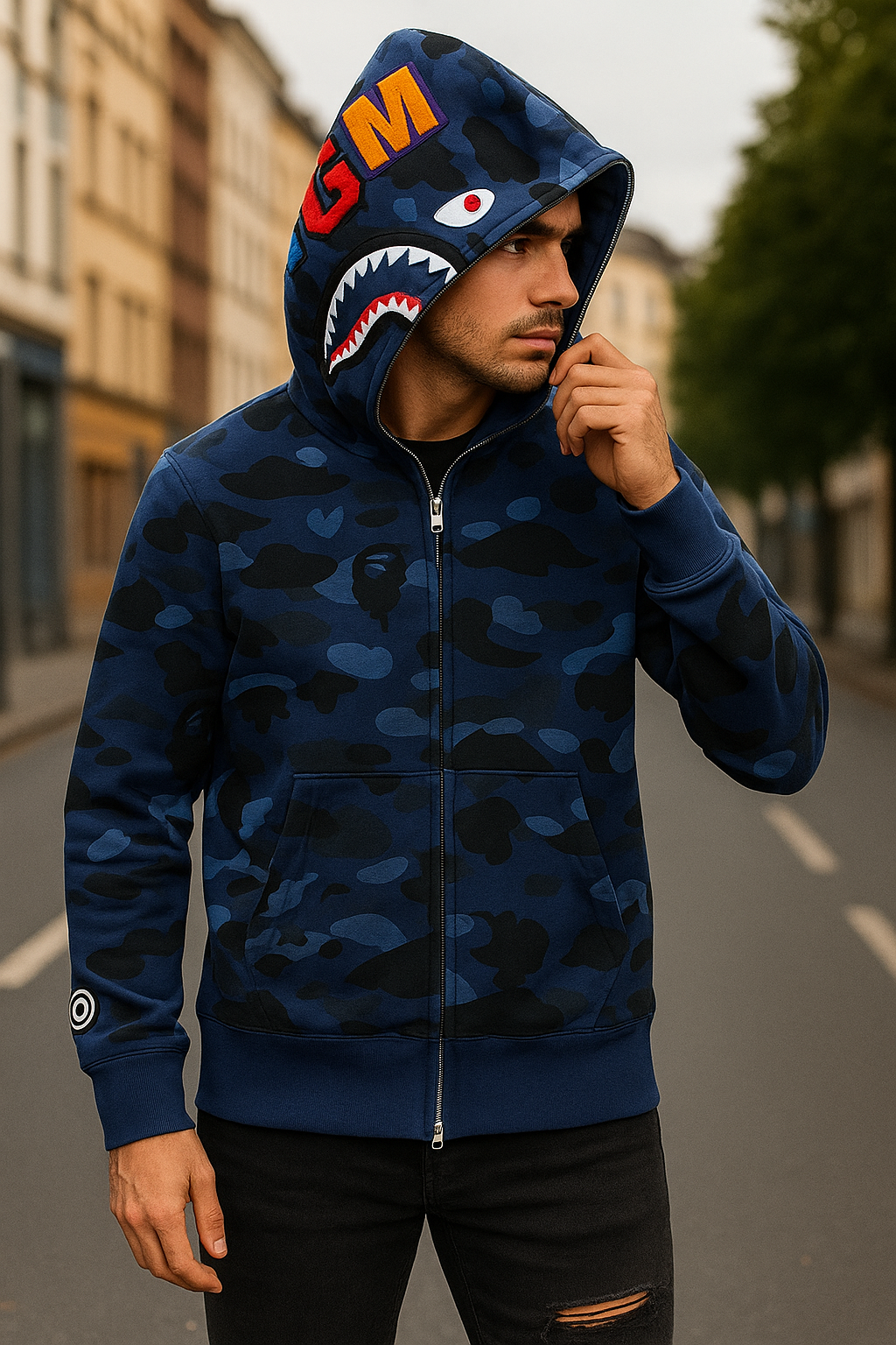 CHOMPA HOODIE BAPE SHARK COLOR AZUL