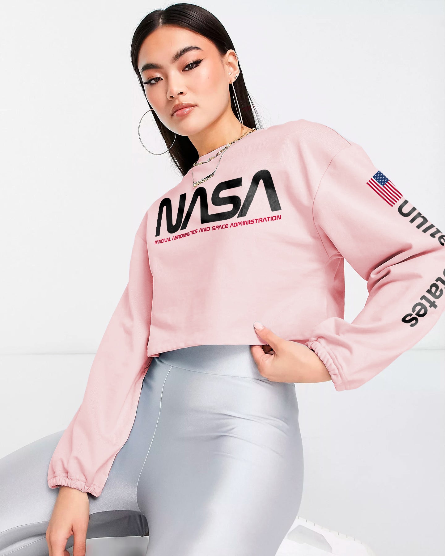 CROP BUZO NASA ROSA ESTAMPADO NEGRO BANDERA