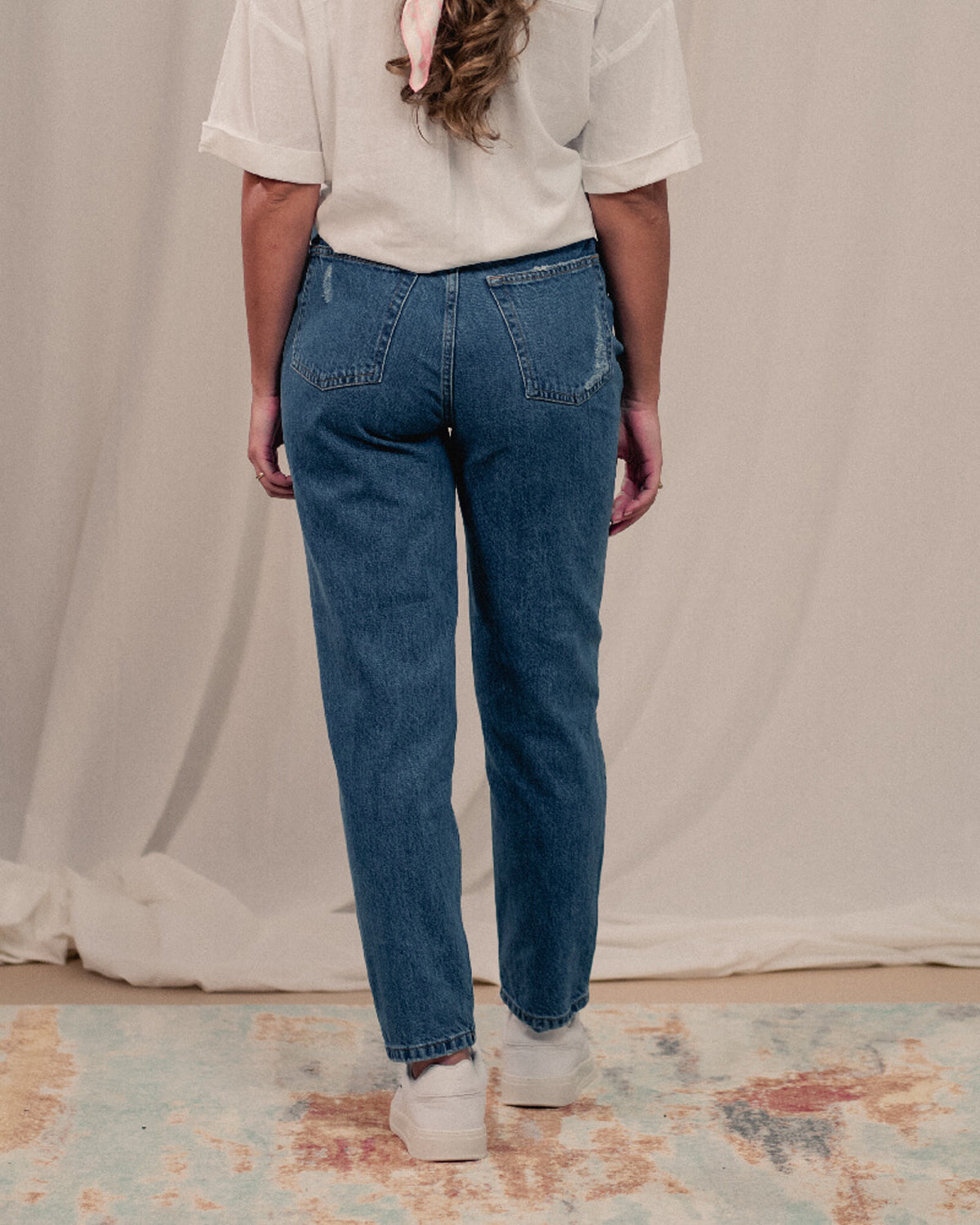 JEAN DAMA AZUL OSCURO CON ROTOS