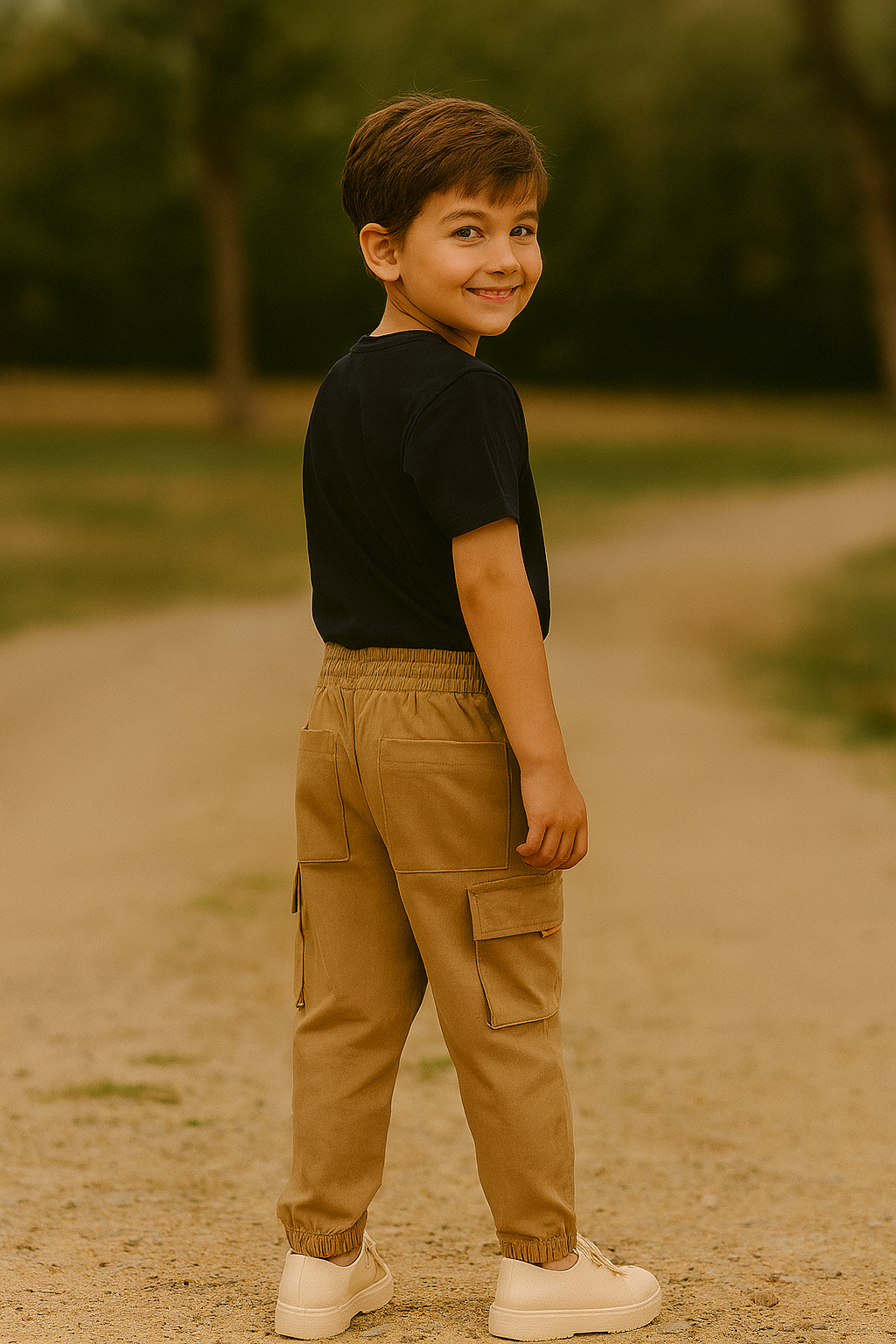 Jogger cargo para niño con diseño moderno y urbano, ideal para un estilo cómodo y con actitud. Cuenta con pretina elástica y cordón ajustable para mayor seguridad, además de prácticos bolsillos cargo laterales que aportan funcionalidad. Sus estampados le dan un toque juvenil y diferente.