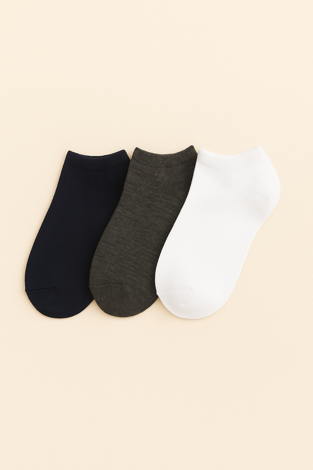 Pack de tres medias tobilleras confeccionadas en tejido suave y elástico que garantiza comodidad y frescura durante todo el día. Su diseño básico y versátil las hace ideales para el uso diario, adaptándose a distintos tipos de calzado y actividades.