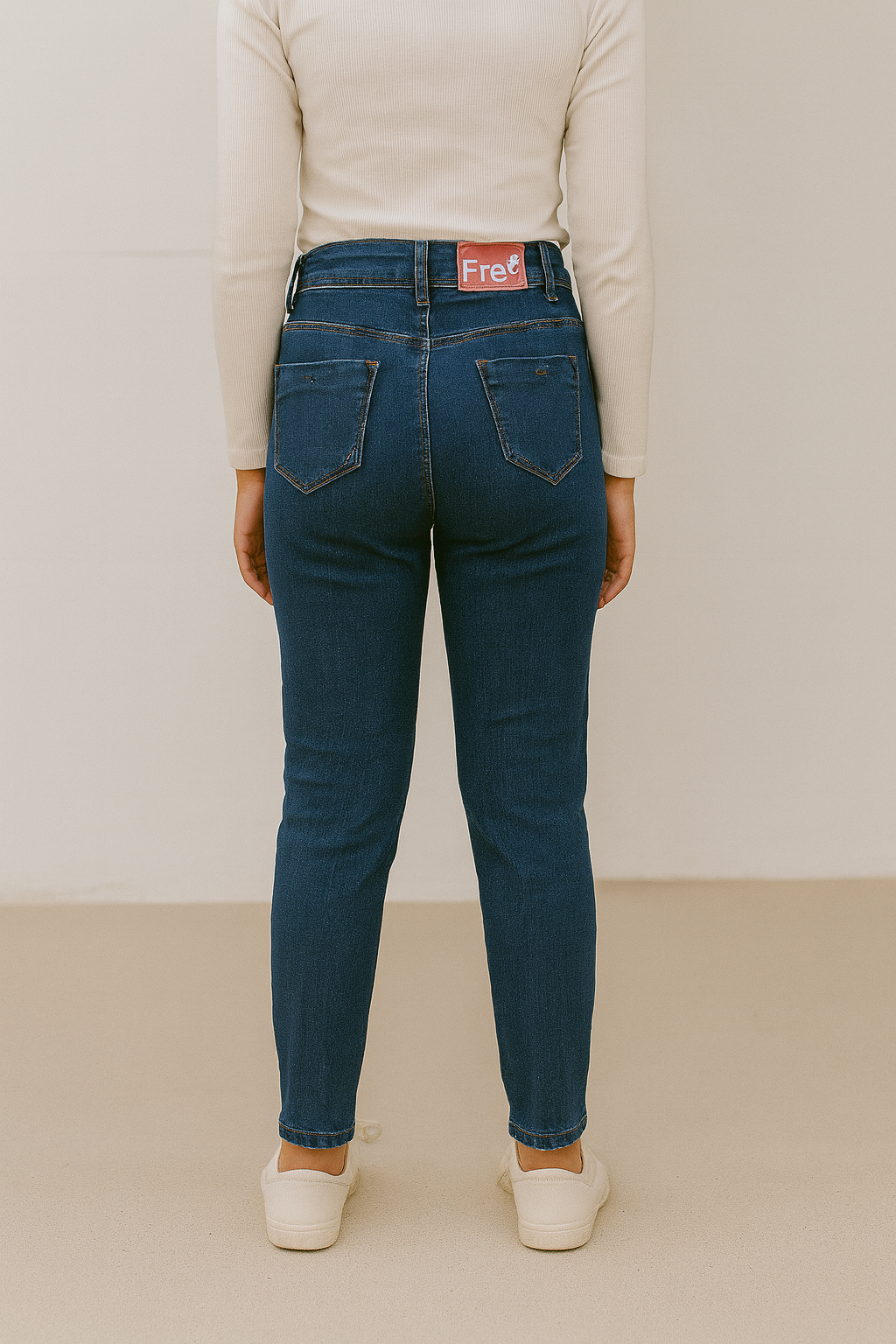 Pantalón jean para niña en tono azul oscuro, diseñado con un corte recto que brinda comodidad y estilo para el uso diario. Su tela resistente y de suave acabado lo convierte en una prenda ideal para acompañar la rutina escolar, juegos o salidas casuales.