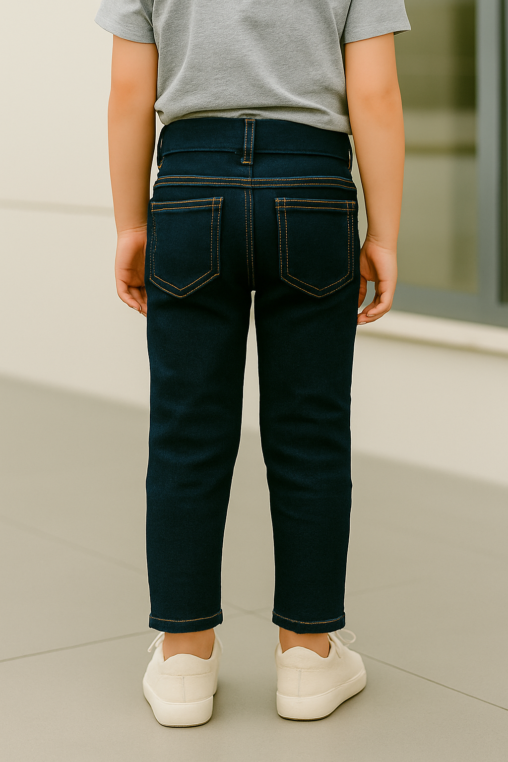 PANTALÓN NIÑO JEAN STRETCH AZUL OSCURO CON CORDÓN