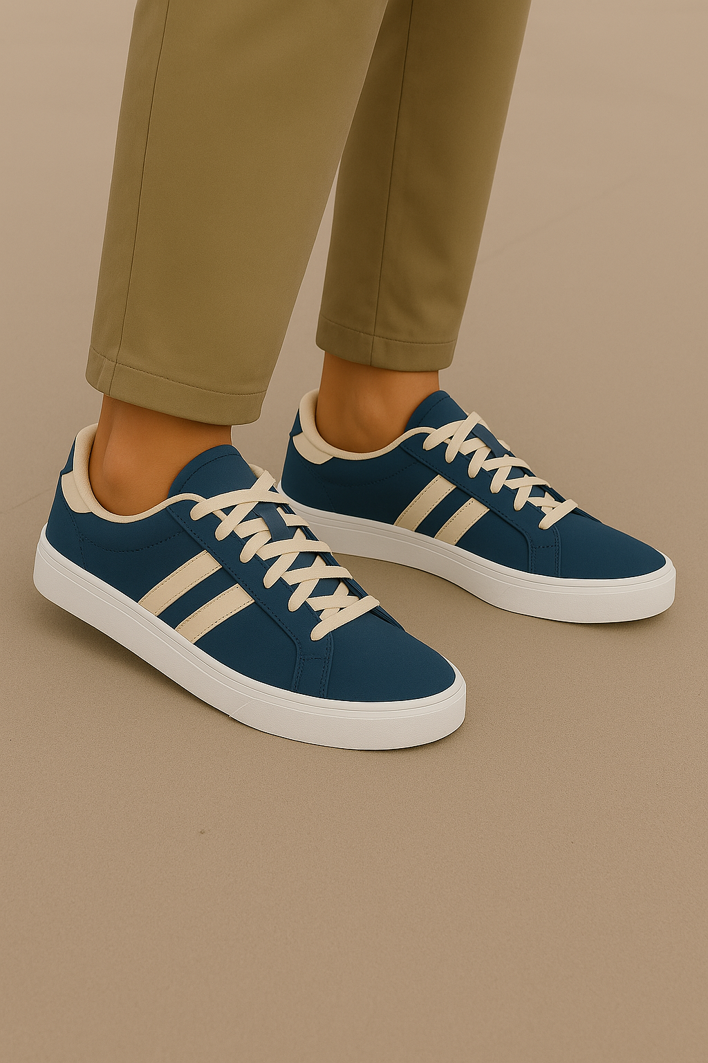 Minimalista y con estilo, este zapato deportivo tipo Gaselle en color azul con dos líneas laterales es perfecto para quienes prefieren un look limpio y moderno. Su diseño sin logo destaca por su simplicidad, ideal para combinar con todo tipo de prendas sin perder elegancia ni comodidad.